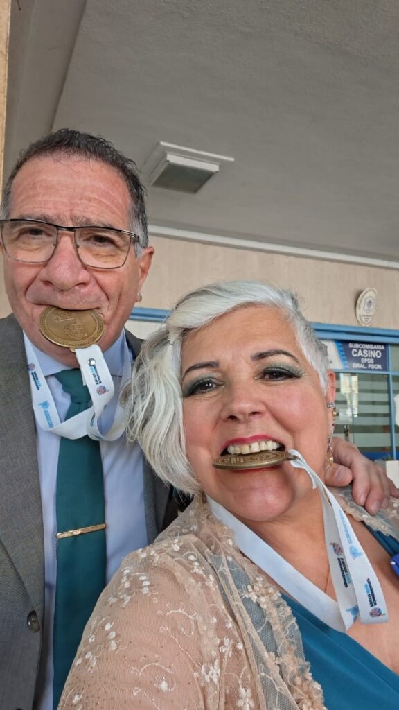 Lilian di Salvo y Alberto Lavia, profesores de tango del Club Atlético Lanús, obtuvieron la medalla de oro en la categoría Adultos Mayores de los Torneos Bonaerenses 2025.