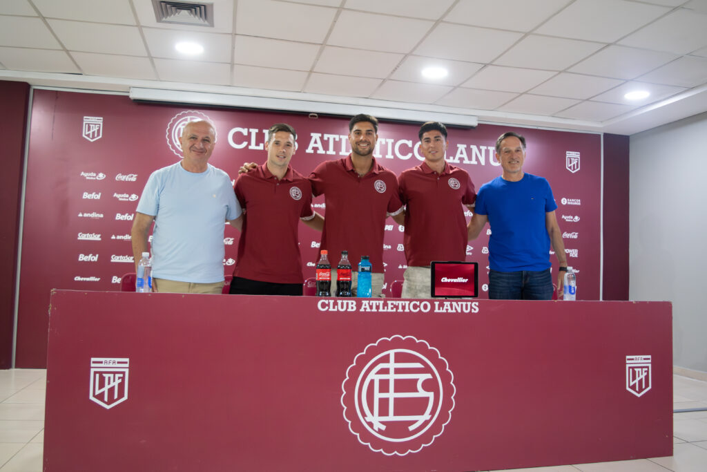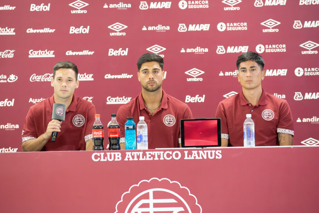 El Club Atlético Lanús realizó este viernes una conferencia de prensa para presentar oficialmente a sus tres incorporaciones: Tomás Guidara, Franco Petroli y Matías Sepúlveda, quienes estuvieron acompañados por el presidente Nicolás Russo y el vicepresidente Alejandro Marón.
